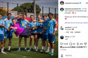 体育资讯4月18日讯 巴萨门将什琴斯尼今日迎来36岁生日,球队在训练场上也摆出造型为其庆祝生日。