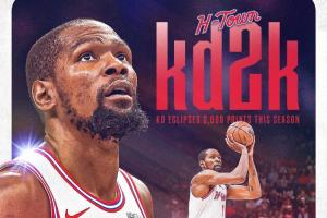 这是杜兰特NBA生涯第8次单赛季得分2000+。